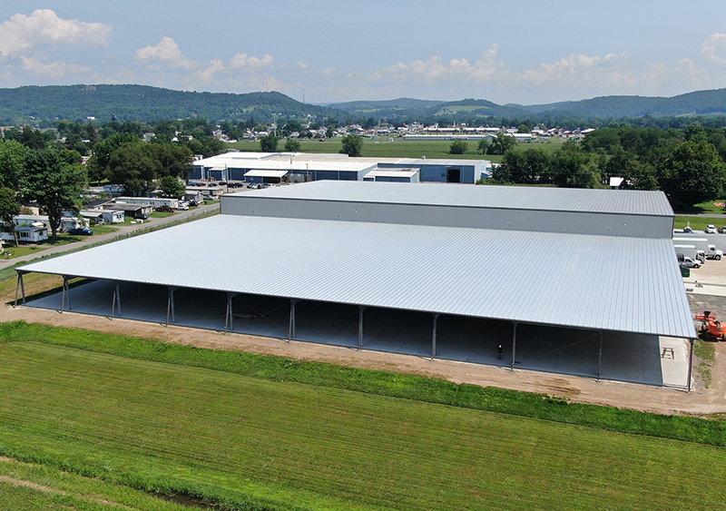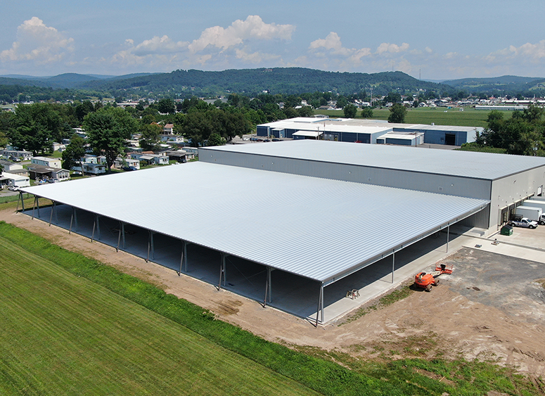 The facility features a steel-framed building with expansive interior space, reinforced concrete foundations and floor systems, and multiple overhead and personnel access points to accommodate large deliveries, equipment movement, and daily workflow. High-performance building materials and insulation systems were utilized to ensure long-term durability, energy efficiency, and year-round functionality.