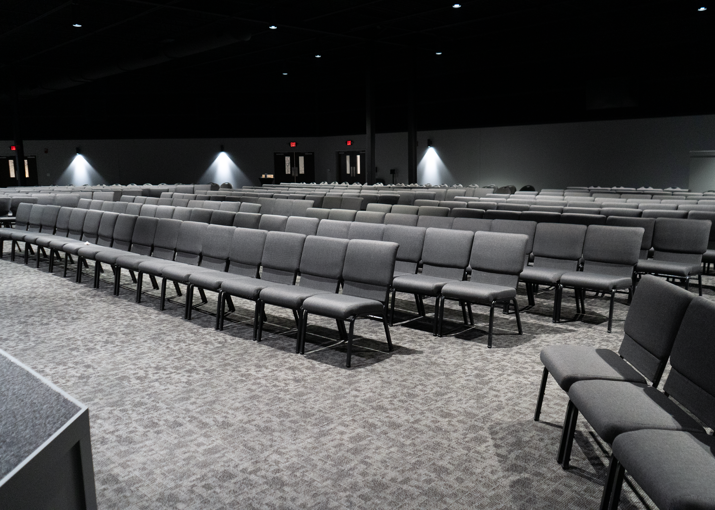 - A newly constructed sanctuary with stage, lighting, and gathering space