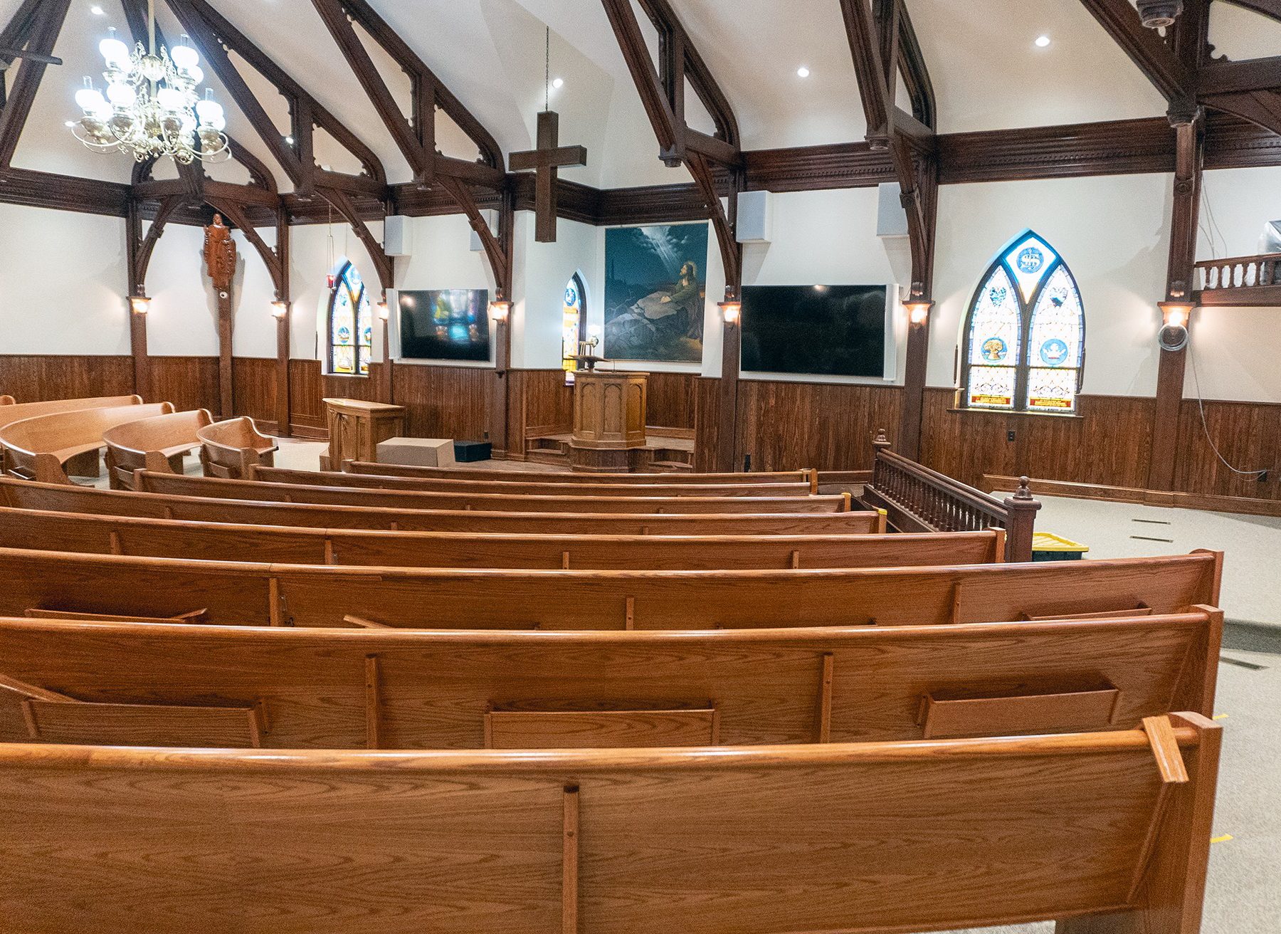 The project involved careful coordination of demolition, structural rebuilding, and interior restoration, along with updates required to meet modern building codes and safety standards. Special attention was given to craftsmanship, schedule management, and respect for the significance of the space, recognizing the church’s importance to both its members and the broader Selinsgrove community.